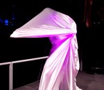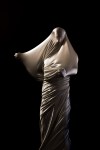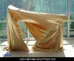 Moving sculpture is a synthesis of the traditions of dance and sculpture. On initial exposure and in still photographs, the works read as static, elegantly draped pieces of abstract figurative statuary. Yet during live performance, as the measured movements progress, the work’s additional nuance and complex nature unfold. Through continued observation the sculpture’s dynamic nature is revealed and observers frequently express emotions ranging from initial confusion to surprise and delight. These works are stylistically versatile and suitable for a broad range of venues. The draped forms are reminiscent of and inspired by Michelangelo’s raw sculptural forms, making them appropriate for traditional elegant fetes.However, they also draw from the traditions of abstraction, and thus are equally well suited for the most cutting edge avante-garde event.